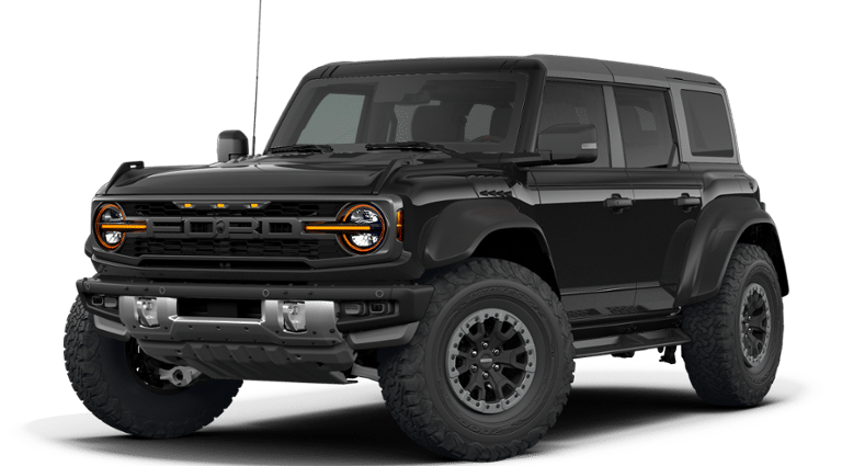 2026 Ford Bronco Raptor Shadow 12 Speakers, 4-Wheel Disc Brakes, ABS brakes, Air Conditioning, Alloy wheels, AM/FM radio: SiriusXM with 360L, Auto High-beam Headlights, Auto-dimming Rear-View mirror, Automatic temperature control, Brake assist, Compass, Connected Navigation, Convertible HardTop, Convertible roof lining, Delay-off headlights, Driver door bin, Driver vanity mirror, Dual front impact airbags, Dual front side impact airbags, Electronic Stability Control, Emergency communication system: 911 Assist, Equipment Group 374A Lux Package, Exterior Parking Camera Rear, Ford Connectivity Package (1-Year Included), Front anti-roll bar, Front Bucket Seats, Front Center Armrest, Front dual zone A/C, Front fog lights, Front License Plate Bracket, Front reading lights, Front wheel independent suspension, Fully automatic headlights, Glass rear window, Heated door mirrors, Heated front seats, Heated steering wheel, Illuminated entry, Integrated roll-over protection, Leather Shift Knob, Low Gloss Black High Coverage Fender Flares, Low tire pressure warning, Marine Grade Vinyl Bucket Seats, Navigation system: Connected Navigation, Occupant sensing airbag, Outside temperature display, Overhead airbag, Overhead console, Panic alarm, Passenger door bin, Passenger vanity mirror, Power door mirrors, Power steering, Power windows, Radio data system, Rear anti-roll bar, Rear seat center armrest, Rear window defroster, Rear window wiper, Remote keyless entry, Security system, SiriusXM with 360L, SiriusXM with 360L (3-Year Plan), Speed control, Split folding rear seat, Steering wheel mounted audio controls, SYNC 4, Tachometer, Telescoping steering wheel, Tilt steering wheel, Traction control, Trip computer, Turn signal indicator mirrors, Variably intermittent wipers, Voltmeter, Wheels: 17 Black High Gloss-Painted Aluminum, Wheels: 17 Dark Carbonized Gray Alloy Painted. 4WD 10-Speed Automatic 3.0L EcoBoost V6