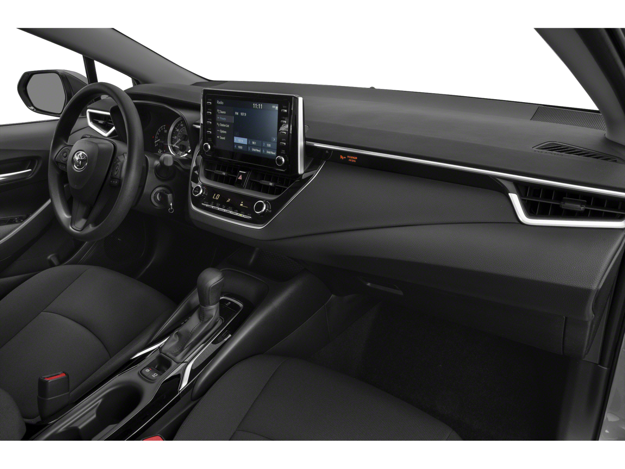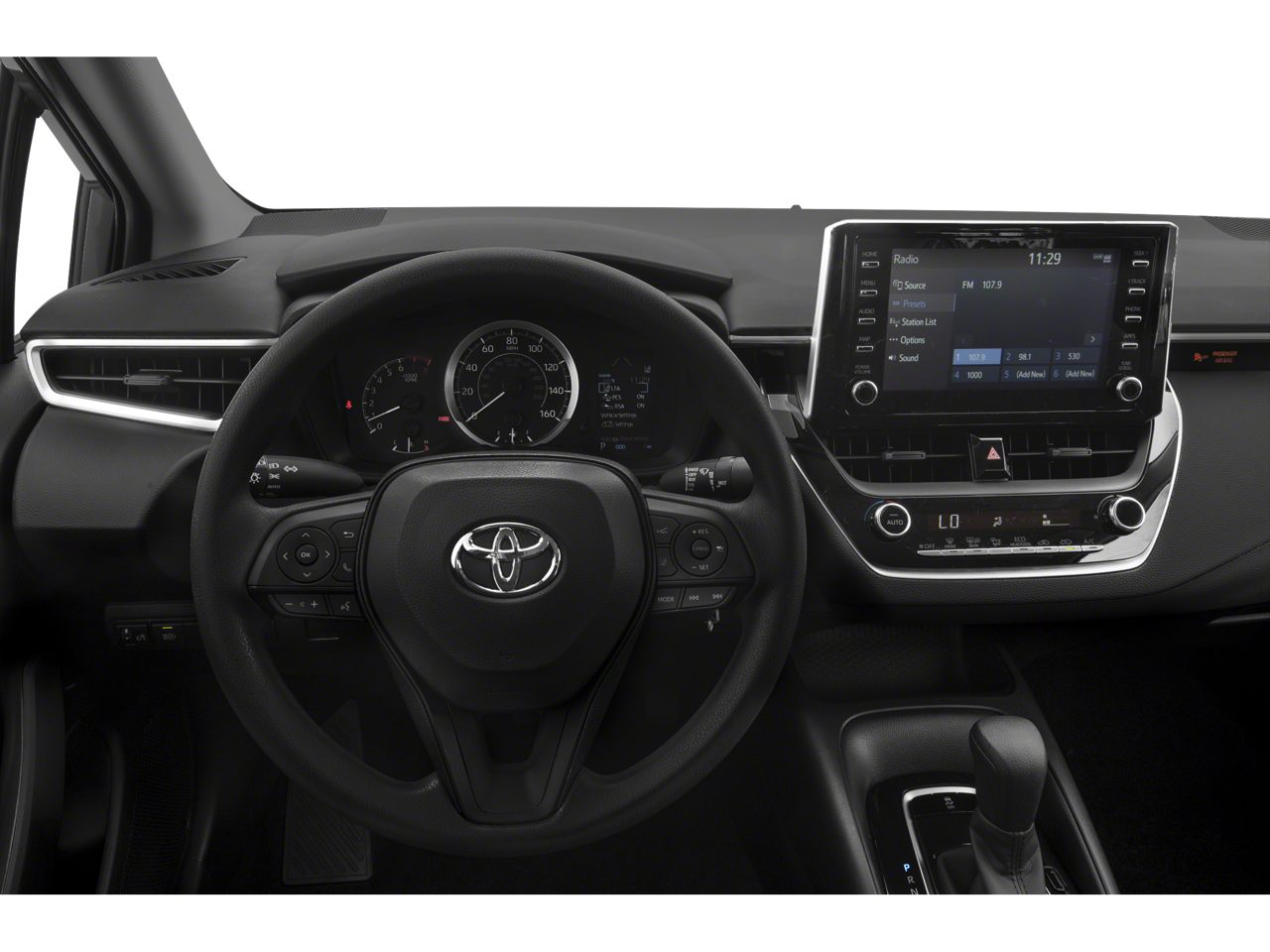 2021 Toyota Corolla Black Sand Pearl LE 4-Wheel Disc Brakes, 6 Speakers, ABS brakes, Air Conditioning, AM/FM radio: SiriusXM, Apple CarPlay/Android Auto, Auto High-beam Headlights, Automatic temperature control, Brake assist, Bumpers: body-color, Delay-off headlights, Driver door bin, Driver vanity mirror, Dual front impact airbags, Dual front side impact airbags, Electronic Stability Control, Emergency communication system: Safety Connect with 1-year trial, Exterior Parking Camera Rear, Four wheel independent suspension, Front anti-roll bar, Front Bucket Seats, Front Center Armrest, Front reading lights, Fully automatic headlights, Illuminated entry, Knee airbag, Low tire pressure warning, Occupant sensing airbag, Outside temperature display, Overhead airbag, Panic alarm, Passenger door bin, Passenger vanity mirror, Power door mirrors, Power steering, Power windows, Premium Fabric Seat Trim, Radio data system, Radio: Audio, Rear anti-roll bar, Rear seat center armrest, Rear side impact airbag, Rear window defroster, Remote keyless entry, Security system, Speed control, Split folding rear seat, Steering wheel mounted audio controls, Tachometer, Telescoping steering wheel, Tilt steering wheel, Traction control, Trip computer, Variably intermittent wipers, Wheels: 16 Wide Vent Steel. FWD CVT 1.8L I4 DOHC 16V