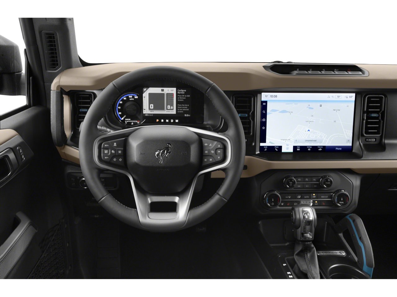 2022 Ford Bronco Oxford White Wildtrak 12 LCD Capacitive Touchscreen w/Swipe Capability, 2 Smart Charging USB Ports In Dashboard, 360-Degree Camera, 4-Wheel Disc Brakes, 4.7 Axle Ratio, 6 Speakers, ABS brakes, Adaptive Cruise Control, Additional Sound Deadening, Air Conditioning, Alloy wheels, AM/FM radio: SiriusXM with 360L, AM/FM Stereo, Auto High-beam Headlights, Auto-dimming Rear-View mirror, Automatic temperature control, Brake assist, Brush Guard, Carbonized Gray Molded-In-Color Hard Top, Compass, Connected Built-In Navigation, Connected Navigation, Delay-off headlights, Driver door bin, Driver vanity mirror, Dual front impact airbags, Dual front side impact airbags, Electronic Stability Control, Emergency communication system: 911 Assist, Equipment Group 354A Lux Package, Evasive Steering Assist, Exterior Parking Camera Rear, Ford Performance Heavy-Duty Modular Front Bumper, Front anti-roll bar, Front Bucket Seats, Front Center Armrest, Front dual zone A/C, Front fog lights, Front Parking Sensors, Front reading lights, Front Row Top Panels Storage Bag, Front wheel independent suspension, Fully automatic headlights, Hard Top Sound Deadening Headliner, Heated Cloth Bucket Seats, Heated door mirrors, Heated front seats, Heated Steering Wheel, Illuminated entry, Information on Demand Panel, Integrated roll-over protection, Leather Shift Knob, Low tire pressure warning, Navigation system: Connected Navigation, Occupant sensing airbag, Outside temperature display, Overhead airbag, Overhead console, Panic alarm, Passenger door bin, Passenger vanity mirror, Powder Coated Tube Step, Power door mirrors, Power steering, Power windows, Radio data system, Radio: B&O Sound System by Bang & Olufsen, Rear-Window Defroster & Washer, Remote keyless entry, Retractable Front Row Twill Soft Top (DIO), Security system, Sideview Mirrors, SiriusXM Radio w/360L, Speed control, Split folding rear seat, Steering wheel mounted audio controls, SYNC 4, Tachometer, Telescoping steering wheel, Tilt steering wheel, Towing Capability, Traction control, Trip computer, Universal Garage Door Opener, Variably intermittent wipers, Voltmeter, Wheels: 17 Black High Gloss-Painted Aluminum, Wireless Charging Pad. 4WD 10-Speed Automatic 2.7L EcoBoost V6