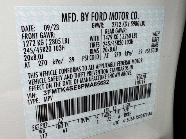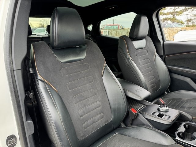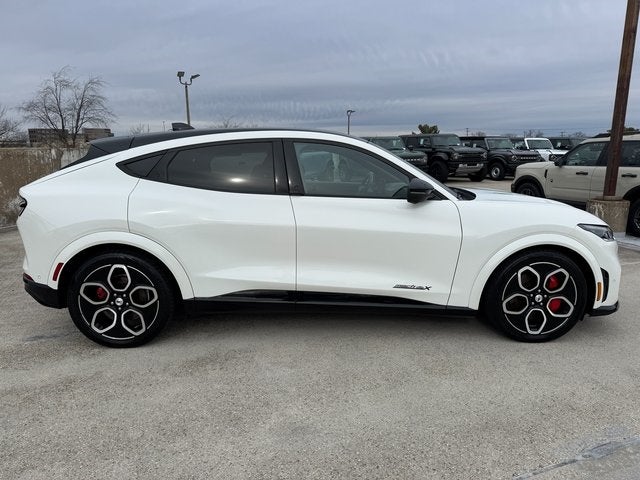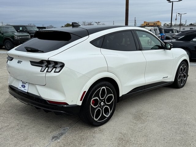 2023 Ford Mustang Mach-E Star White Metallic Tri-Coat GT 10 Speakers, 1st & 2nd Row Floor Liners w/o Carpet Mats, 4-Wheel Disc Brakes, ABS brakes, Air Conditioning, Alloy wheels, AM/FM radio: SiriusXM with 360L, AM/FM Stereo, Apple CarPlay/Android Auto, Auto High-beam Headlights, Auto-dimming Rear-View mirror, Automatic temperature control, Axle Ratio: 9.05, Brake assist, Bumpers: body-color, Cargo Floor Liner, Compass, Delay-off headlights, Driver door bin, Driver vanity mirror, Dual front impact airbags, Dual front side impact airbags, Electronic Stability Control, Emergency communication system: 911 Assist, Equipment Group 400A, Exterior Parking Camera Rear, Four wheel independent suspension, Front anti-roll bar, Front Bucket Seats, Front Center Armrest, Front dual zone A/C, Front reading lights, Fully automatic headlights, Garage door transmitter, Heated ActiveX Sport Seats, Heated door mirrors, Heated front seats, Heated steering wheel, Illuminated entry, Interior Protection Package (Pre-Installed), Knee airbag, Low tire pressure warning, Memory seat, Mobile Power Cord (120V/240V), Navigation system: Connected Navigation, Occupant sensing airbag, Outside temperature display, Overhead airbag, Overhead console, Panic alarm, Passenger door bin, Passenger vanity mirror, Power door mirrors, Power driver seat, Power Liftgate, Power passenger seat, Power steering, Power windows, Radio data system, Rain sensing wipers, Rear anti-roll bar, Rear seat center armrest, Rear side impact airbag, Rear window defroster, Rear window wiper, Remote keyless entry, Security system, SiriusXM Radio w/360L, Speed control, Speed-sensing steering, Speed-Sensitive Wipers, Split folding rear seat, Spoiler, Steering wheel mounted audio controls, SYNC 4A w/Enhanced Voice Recognition, Telescoping steering wheel, Tilt steering wheel, Traction control, Trip computer, Turn signal indicator mirrors, Variably intermittent wipers, Wheel Lock Kit, Wheels: 20 Machined-Face Aluminum. CARFAX One-Owner. Clean CARFAX. AWD Single-Speed Automatic Dual Electric Motor