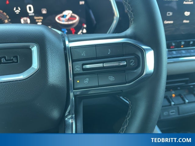 Preferred Equipment Group 5SB (120-Volt Bed Mounted Power Outlet, 2 Rear USB Ports in Center Console (Charge-Only), 5 Rectangular Chrome Assist Steps, 6-Way Power Passenger Seat Adjuster, 8-Way Power Driver Seat Adjuster, Adaptive Cruise Control, Automatic Emergency Braking, Automatic Locking Rear Differential, Blind Zone Steering Assist, Canyon Pro Safety, Driver & Front Passenger Illuminated Visors, Driver & Front Passenger Ventilated Seats, Driver Memory, Driver Seatback Map Pocket, Dual-Zone Automatic Air Conditioning, EZ-Lift & Lower Tailgate, Following Distance Indicator, Forward Collision Alert, Front LED Fog Lamps, Front Pedestrian & Bicyclist Braking, HD Surround Vision, Heated Driver & Front Passenger Seats, Heated Power-Adjustable Outside Mirrors, Heated Steering Wheel, Inside Rear-View Auto-Dimming Mirror, IntelliBeam Automatic High Beam On/Off, Interior Overhead Courtesy Light w/Dual Reading Lamp, Lane Keep Assist w/Lane Departure Warning, Manual Rear-Sliding Window, Multicolor 6.3 Diagonal Head-Up Display, MultiStow Tailgate, Power Driver Lumbar Control Seat Adjuster, Power Passenger Lumbar Control Seat Adjuster, Premium 7-Speaker Bose Sound System, Rear Center Fold-Down Armrest w/2 Cupholders, Rear Cross Traffic Braking, Rear of Console 120-Volt Power Outlet, Rear Pedestrian Alert, Rear-Window Electric Defogger, Remote Vehicle Starter System, Safety Alert Seat, Spray-On Bedliner, Tailgate Keyed Cylinder Lock, Tilt & Telescopic Manual Steering Column, Ultrasonic Rear Park Assist, and Wireless Charging), ProGrade Trailering System (Trailering App System), Trailering Package (Integrated Trailer Brake Controller), Ford Blue Advantage: Blue Certified Certified, 4WD, 2 1st Row USB Charge/Data Ports, 220 Amps Alternator, 3.42 Rear Axle Ratio, 4-Wheel Disc Brakes, 7 Speakers, ABS brakes, Air Conditioning, Alloy wheels, AM/FM radio: SiriusXM, Apple CarPlay/Android Auto, Auto High-beam Headlights, Auto-dimming Rear-View mirror, Automatic Stop/Start, Automatic temperature control, Brake assist, Bumpers: body-color, Compass, Cruise Control / Speed control, Delay-off headlights, Driver door bin, Driver Mode Selector, Driver vanity mirror, Dual front impact airbags, Dual front side impact airbags, Electronic Stability Control, Front anti-roll bar, Front Bucket Seats, Front Center Armrest, Front dual zone A/C, Front fog lights, Front License Plate Kit, Front Passenger Seatback Map Pocket, Front reading lights, Front wheel independent suspension, Genuine wood dashboard insert, Genuine wood door panel insert, Heads-Up Display, Heated door mirrors, Heated front seats, Heated steering wheel, Illuminated entry, Low tire pressure warning, Memory seat, Navigation System, Occupant sensing airbag, Outside temperature display, Overhead airbag, Overhead console, Panic alarm, Passenger door bin, Passenger vanity mirror, Perforated Leather-Appointed Seat Trim, Power door mirrors, Power driver seat, Power Inner Sliding Glass Sunroof w/Manual Shade, Power passenger seat, Power steering, Power windows, Radio data system, Radio: 11.3 Diagonal Premium GMC Infotainment Sys, Rear reading lights, Rear seat center armrest, Rear step bumper, Rear window defroster, Remote keyless entry, Security System, SiriusXM w/360L, Speed-sensing steering, Split folding rear
