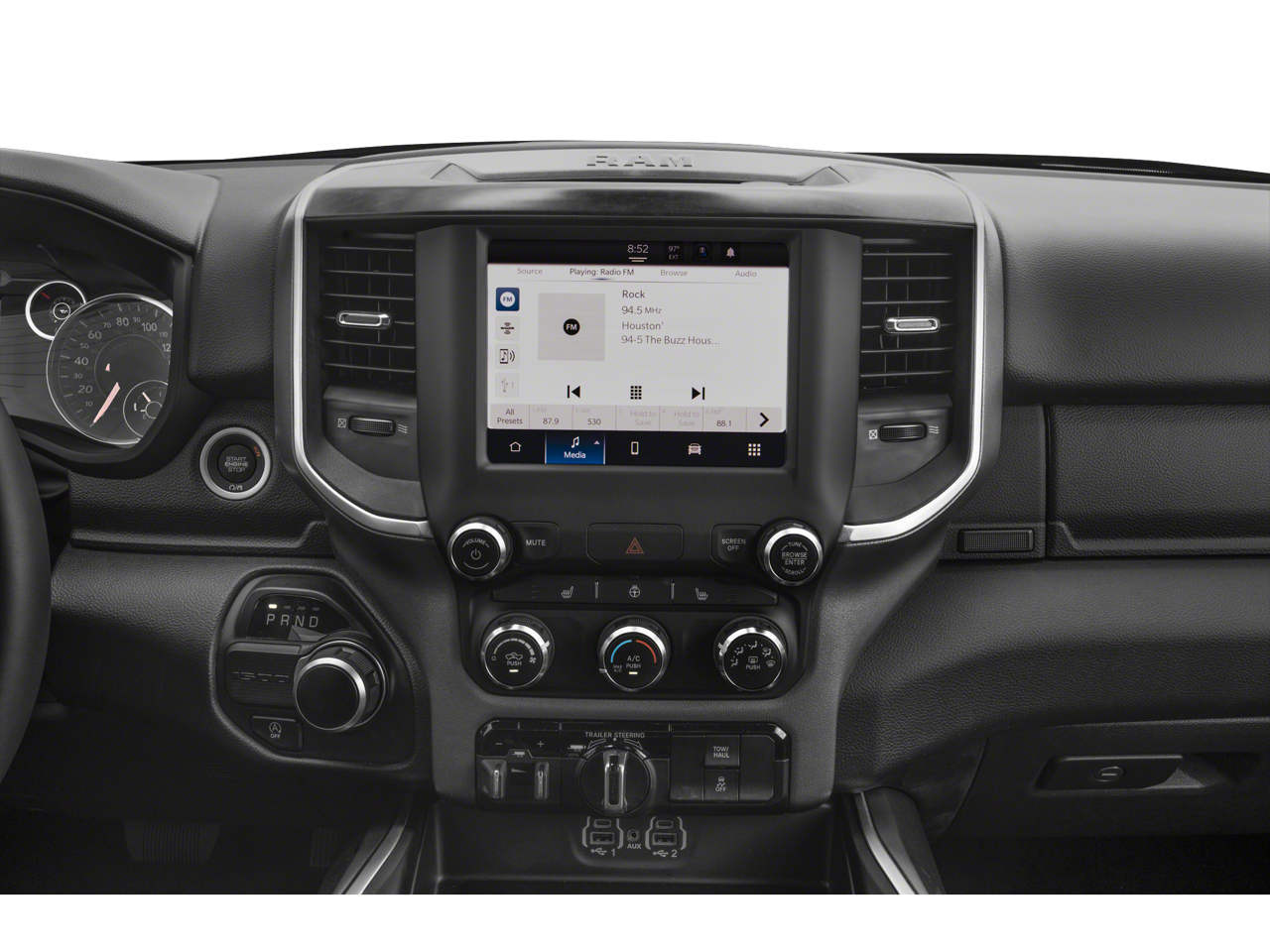 2023 Ram 1500 Granite Crystal Metallic Clearcoat Big Horn/Lone Star 115V Auxiliary Power Outlet, 2nd Row In Floor Storage Bins, 3 Rear Seat Head Restraints, 3.21 Rear Axle Ratio, 33 Gallon Fuel Tank, 4 Way Front Headrests, 4-Wheel Disc Brakes, 400W Inverter, 48V Belt Starter Generator, 4G LTE Wi-Fi Hot Spot, 6 Speakers, 8.4 Touchscreen Display, 9 Amplified Speakers w/Subwoofer, ABS brakes, Accent Color Door Handles, Accent Color Premium Power Mirrors, Air Conditioning, Air Conditioning ATC w/Dual Zone Control, All R1 High Radios, All Radio Equipped Vehicles, Alloy wheels, AM/FM radio, Anti-Spin Differential Rear Axle, Apple CarPlay, Auto-Dimming Exterior Driver Mirror, Auto-Dimming Rear-View Mirror, Bed Utility Group, Big Horn Badge, Big Horn Level 2 Equipment Group (DISC), Black Exterior Mirrors, Black Exterior Truck Badging, Black Headlamp Bezels, Black Interior Accents, Black Painted Exterior Mirrors Caps, Black Premium Power Mirrors, Blind Spot & Cross Path Detection, Bluetooth® Handsfree Phone & Audio, Body Color Front Bumper, Body Color Rear Bumper w/Step Pads, Brake assist, Bucket Seats, Bumpers: chrome, Center Console Parts Module, Class IV Receiver Hitch, Cloth Bench Seat, Cluster 7.0 TFT Color Display, Compass, Connected Travel & Traffic Services, Connectivity - US/Canada, Convex Wide-Angle Exterior Mirror Insert, Delay-off headlights, Deluxe Cloth Bucket Seats, Disassociated Touchscreen Display, Dome Dual LED Reading Lamp, Driver door bin, Dual Exhaust w/Black Tips, Dual front impact airbags, Dual front side impact airbags, Dual-Pane Panoramic Sunroof, Electric Shift-On-Demand Transfer Case, Electronic Stability Control, Emergency communication system: SiriusXM Guardian, Exterior Mirrors Courtesy Lamps, Exterior Mirrors w/Heating Element, Exterior Mirrors w/Supplemental Signals, For Details, Visit DriveUconnect.com, For More Info, Call 800-643-2112, Front anti-roll bar, Front Center Armrest w/Storage, Front Fog Lamps, Front LED Fog Lamps, Front License Plate Bracket, Front reading lights, Front Seat Back Map Pockets, Front wheel independent suspension, Full Length Floor Console, Fully automatic headlights, Global Telematics Box Module (TBM), Glove Box Lamp, Google Android Auto, GPS Antenna Input, GPS Navigation, HD Radio, Heated door mirrors, Heated Front Seats, Heated Steering Wheel, Illuminated entry, Integrated Center Stack Radio, Integrated Voice Command w/Bluetooth®, Leather steering wheel, LED Footwell Lighting, LED Reflector Headlamps, LED Taillamps, Low tire pressure warning, Manual Adjust 4-Way Front Passenger Seat, Media Hub w/2 Charge Only USBs, MOPAR 4 Adjustable Cargo Tie-Down Hooks, Mopar Black Tubular Side Steps, MOPAR Deployable Bed Step, MOPAR Front & Rear Rubber Floor Mats, MOPAR Spray In Bedliner, Night Edition, Occupant sensing airbag, Outside temperature display, Overhead airbag, Overhead console, Overhead LED Lamps, Panic alarm, ParkSense Front/Rear Park Assist w/Stop, ParkView Rear Back-Up Camera, Passenger door bin, Passenger vanity mirror, Pick-Up Box Lighting, Power 2-Way Driver Lumbar Adjust, Power 8-Way Driver Seat, Power Adjustable Pedals, Power door mirrors, Power steering, Power windows, Power-Folding Mirrors, Premium Lighting Group, Premium Overhead Console, Quick Order Package 23Z Big Horn, Quick Order Package 27Z Big Horn, Radio data system, Radio: Uconnect 3 w/5 Display, Radio: Uconnect 5 Nav w/8.4 Display, Radio: Uconnect 5 W w/8.4 Display, RAM Grille Badge - Black, RAM Grille Badge - Chrome, Rear 60/40 Folding Seat, Rear anti-roll bar, Rear Center Armrest, Rear Dome w/On/Off Switch Lamp, Rear Power Sliding Window, Rear seat center armrest, Rear step bumper, Rear Window Defroster, Remote keyless entry, Remote Start System, Security Alarm, SiriusXM Satellite Radio, SiriusXM w/360L, Speed control, Split folding rear seat, Steering wheel mounted audio controls, Sun Visors w/Illuminated Vanity Mirrors, Tachometer, Telescoping steering wheel, Tilt steering wheel, Traction control, T