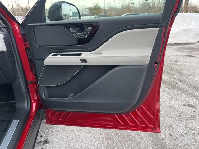 Equipment Group 100A (Auto Air Refresh, Lincoln BlueCruise Equipped (4-Years Included), and Wireless Charging), Jet Appearance Package (Black Exterior Elements, Body-Color Exterior Elements, and Wheels: 21 Bright-Machined Aluminum), Auto High-beam Headlights, Brake assist, Cruise Control / Speed control, Delay-off headlights, Electronic Stability Control, Fully automatic headlights, Power Liftgate, Power moonroof: Panoramic Vista Roof, Rain sensing wipers, Rear window wiper, Speed-Sensitive Wipers, Variably intermittent wipers, 10 Speakers, 3rd row seats: split-bench, 4-Wheel Disc Brakes, ABS brakes, Adaptive suspension, Air Conditioning, All-Weather 1st & 2nd Row Floor Liners (16A), Alloy wheels, AM/FM radio: SiriusXM, Apple CarPlay/Android Auto, Audio memory, Auto-dimming door mirrors, Auto-dimming Rear-View mirror, Automatic temperature control, Bumpers: body-color, Compass, Driver door bin, Driver vanity mirror, Dual front impact airbags, Dual front side impact airbags, Emergency communication system: 911 Assist, Four wheel independent suspension, Front anti-roll bar, Front Bucket Seats, Front Center Armrest, Front dual zone A/C, Front License Plate Bracket, Front reading lights, Garage door transmitter, Heated door mirrors, Heated front seats, Heated steering wheel, HVAC memory, Illuminated entry, Knee airbag, Leather steering wheel, Lincoln Digital Experience, Lincoln Soft Touch Heated/Ventilated Comfort Seats, Low tire pressure warning, Memory seat, Navigation system: Connected Navigation (1-year trial), Occupant sensing airbag, Outside temperature display, Overhead airbag, Overhead console, Panic alarm, Passenger door bin, Passenger vanity mirror, Power door mirrors, Power driver seat, Power passenger seat, Power steering, Power windows, Radio data system, Radio: Lincoln Premium AM/FM/HD Audio System, Rear air conditioning, Rear anti-roll bar, Rear audio controls, Rear reading lights, Rear window defroster, Remote keyless entry, Security System, SiriusXM, Split folding rear seat, Spoiler, Steering wheel memory, Steering wheel mounted A/C controls, Steering wheel mounted audio controls, Tachometer, Telescoping steering wheel, Tilt steering wheel, Traction control, Trip computer, Turn signal indicator mirrors, and Ventilated front seats